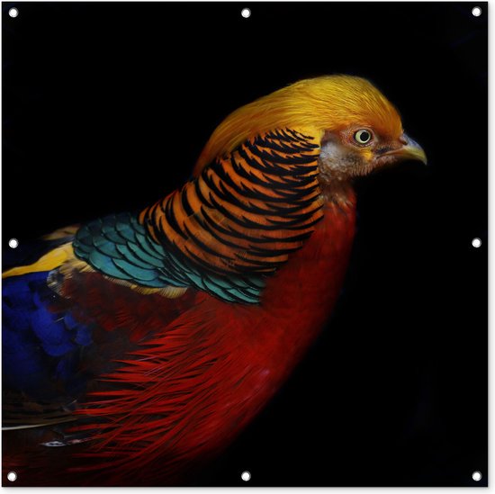 Affiche de jardin Faisan doré sur fond noir Toile en vrac 100x100 cm - Toile de jardin / Toile d'extérieur / Peintures d'extérieur (décoration de jardin)
