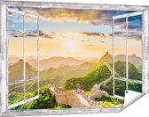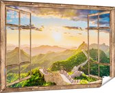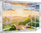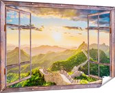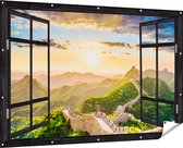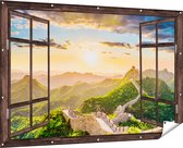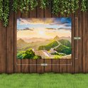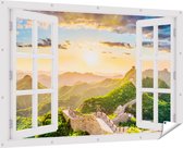 Affiche de jardin Gards La Grande Muraille de Chine à travers les Montagnes avec soleil - 160x120 cm - Toile de jardin - Décoration de jardin - Décoration murale extérieure - Tableau de jardin