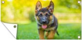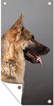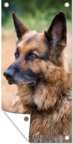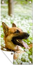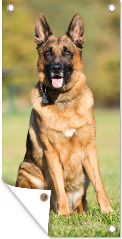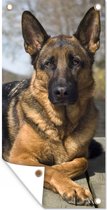 Affiche de jardin Herder allemand assis au soleil - 40x80 cm - Décoration murale Extérieur - Affiche de jardin - Toile de jardin - Affiche de clôture - Peinture de jardin