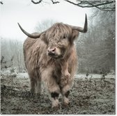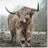 Affiche de Jardin Highlander écossais - Forêt - Brouillard - 200x200 cm - Toile jardin - Affiche extérieure