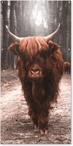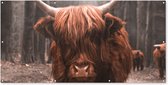 Affiche de clôture Animaux - Highlander écossais - Forêt - 100x200 cm - Tissu de jardin