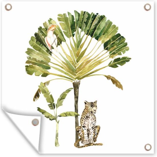 Affiche de Jardin Jungle - Cacatoès - Léopard - 200x200 cm