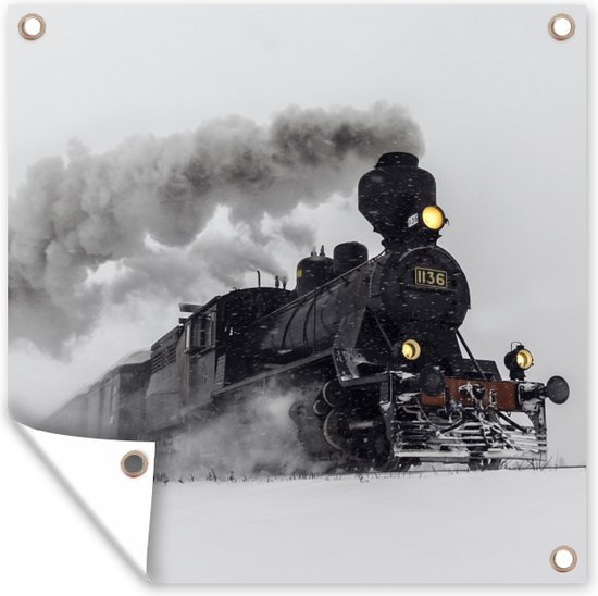 Affiche de Jardin Locomotive à vapeur dans la neige - carré - 200x200 cm - Toile jardin - Affiche extérieure