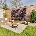 Les Posters de jardin, également appelées toiles de jardin, sont des affiches spécialement conçues pour être accrochées à l'extérieur. Cette nappe de jardin peut donc prendre une raclée. La voile Bisonyl a été utilisée pour cette affiche extérieure. Cette voile est une bâche enduite avec une belle finition. L'affiche de jardin est résistante aux UV, elle ne se décolore donc pas au soleil. Plusieurs anneaux ont été placés dans la toile pour que vous puissiez facilement l'accrocher! Jusqu'à une taille de 120x80 cm, les anneaux sont dans les coins, avec des tailles plus grandes, les anneaux viennent tous les 60 cm. Le tissu résiste aux différentes influences climatiques et est garanti 3 ans.