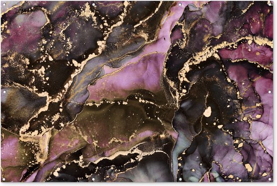 Affiche de jardin Marbre - Or - Pierre - Abstrait - 190x120 cm - Décoration murale extérieure - Affiche de jardin - Toile de jardin - Affiche de clôture - Peinture de jardin