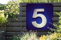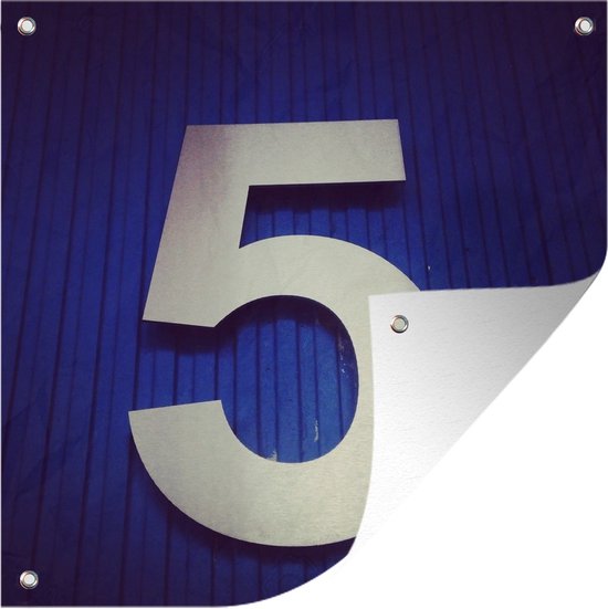 Affiche de jardin numéro 5 sur fond bleu foncé 100x100 cm - Toile de jardin / Toile d'extérieur / Peintures d'extérieur (décoration de jardin)
