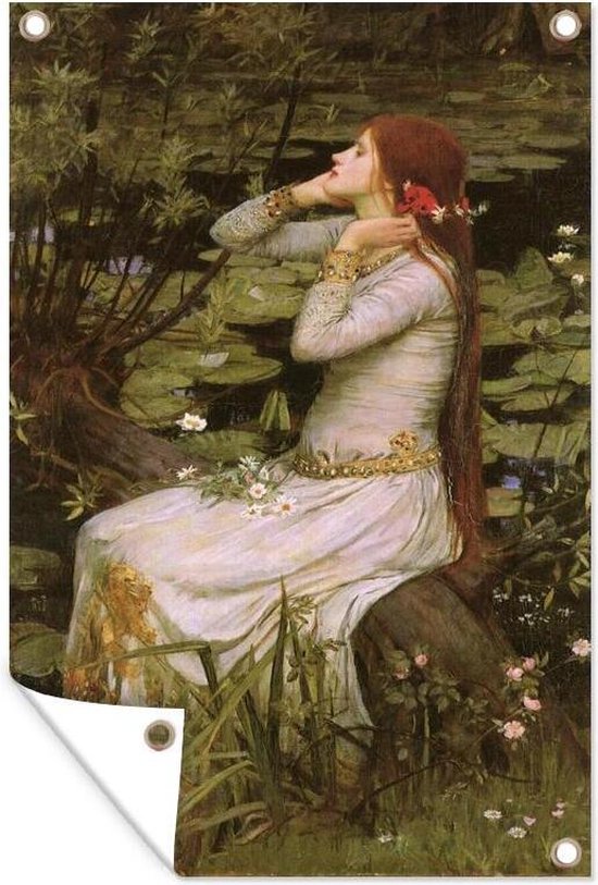 Affiche de jardin Ophelia - peinture de John William Waterhouse - 40x80 cm - Décoration murale extérieure - Affiche de jardin - Toile de jardin - Affiche de clôture - Tableau de jardin