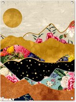 Affiche de jardin Or - Fleurs - Imprimé - Abstrait - Paysage - Motifs - 60x30 cm - Toile jardin - Affiche extérieure