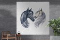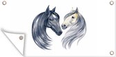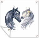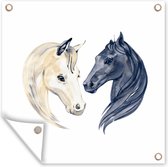 Affiche de Jardin Paarden - Aquarelle - Wit - Filles - Enfants - Meiden - 200x200 cm - Toile jardin - Affiche extérieure