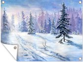 Affiche de jardin - Peinture de jardin Forêt - Hiver - Affiche de jardin - Neige - Décoration de jardin - Forêt - 100x100 cm - Toile de jardin - Affiche extérieure