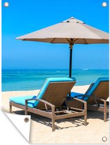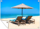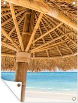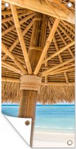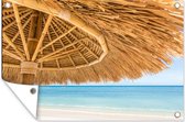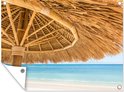 Affiche de jardin - Plage - Parasol - Roseau - Mer - Tropical - 120x90 cm - Affiche extérieure - Décoration murale Décoration de jardin Décoration murale- Toile jardin