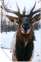 Affiche de jardin Renne dans la neige 80x120 cm - Toile de jardin / Toile d'extérieur / Peintures d'extérieur (décoration de jardin)