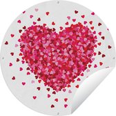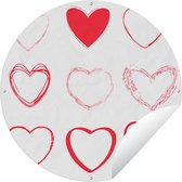Affiche de jardin ronde Illustration de Hartjes - Une illustration de papier peint avec des coeurs rouges Affiche de jardin - Affiche de jardin ronde 60x60 cm - Toile de jardin/Toile d'extérieur/ Peintures pour l'extérieur (décoration de jardin)
