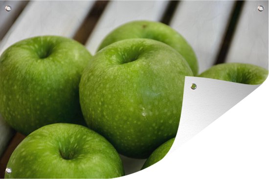 Affiche de jardin Six Granny Smith pommes en vrac 90x60 cm - Toile de jardin / Toile d'extérieur / Peintures pour l'extérieur (décoration de jardin)