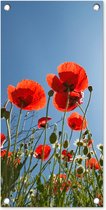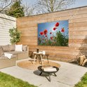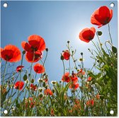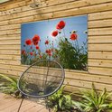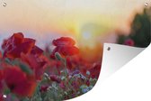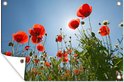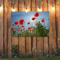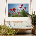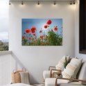 Affiche de jardin Soleil éclatant au-dessus de quelques coquelicots en Espagne - 130x80 cm - Décoration murale Extérieur - Affiche de jardin - Toile de jardin - Affiche de clôture - Peinture de jardin