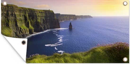 Affiche de jardin Soleil sur les falaises de Moher en Irlande - 80x40 cm