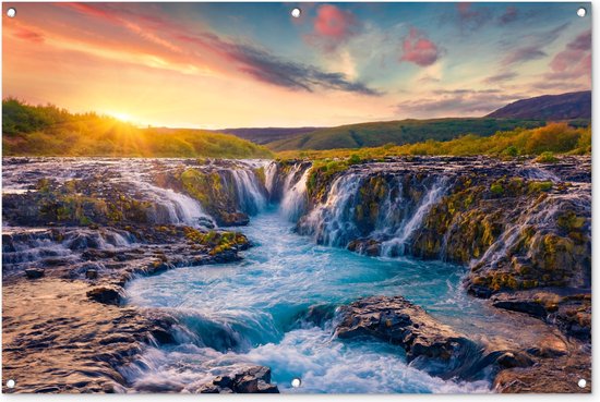 Affiche de jardin - Toile de jardin - Affiches de jardin extérieur - Cascade - Plantes - Mousse - Paysage - Coucher de soleil - Rocher - Posters de jardin cm - Jardin