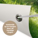 Les Posters de jardin, également appelées toiles de jardin, sont des affiches spécialement conçues pour être accrochées à l'extérieur. Cette nappe de jardin peut donc prendre une raclée. La voile Bisonyl a été utilisée pour cette affiche extérieure. Cette voile est une bâche enduite avec une belle finition. L'affiche de jardin est résistante aux UV, elle ne se décolore donc pas au soleil. Plusieurs anneaux ont été placés dans la toile pour que vous puissiez facilement l'accrocher! Jusqu'à une taille de 120x80 cm, les anneaux sont dans les coins, avec des tailles plus grandes, les anneaux viennent tous les 60 cm. Le tissu peut résister aux différentes conditions météorologiques et durera au moins 3 ans.