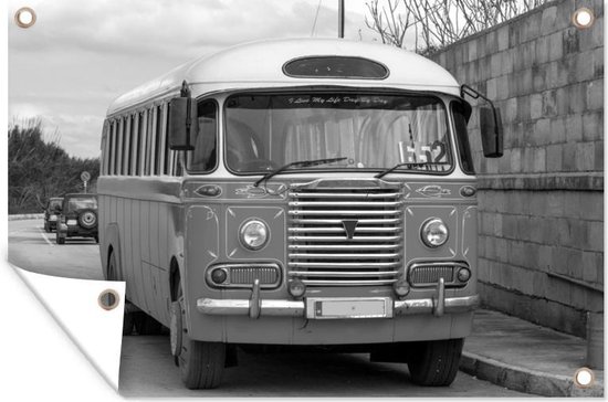 Affiche de jardin - Toile de jardin - Affiches extérieures - Bus Vintage à Malte - noir et blanc - Posters de jardin cm - Jardin