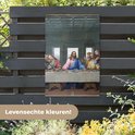 Les Posters de jardin, également appelées toiles de jardin, sont des affiches spécialement conçues pour être accrochées à l'extérieur. Cette nappe de jardin peut donc prendre une raclée. La voile Bisonyl a été utilisée pour cette affiche extérieure. Cette voile est une bâche enduite avec une belle finition. L'affiche de jardin est résistante aux UV, elle ne se décolore donc pas au soleil. Plusieurs anneaux ont été placés dans la toile pour que vous puissiez facilement l'accrocher! Jusqu'à une taille de 120x80 cm, les anneaux sont dans les coins, avec des tailles plus grandes, les anneaux viennent tous les 60 cm. Le tissu résiste aux différentes influences climatiques et est garanti 3 ans.