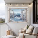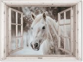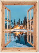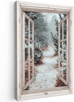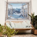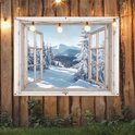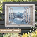 Peinture de jardin - Vue à travers - Hiver - Paysage - Nature - Berg - Arbres - Wit - Posters de jardin extérieur