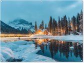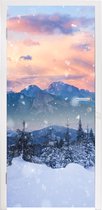 Affiche de jardin Transparent - Hiver - Paysage - Nature - Berg - Arbres - Wit - 160x120 cm - Toile de jardin - Affiche d'extérieur