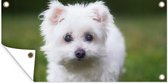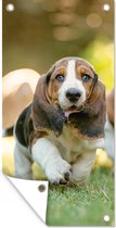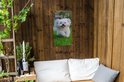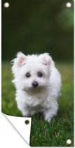 Affiche de jardin Un chien Shih Tzu se promène dans l'herbe verte - 40x80 cm