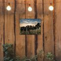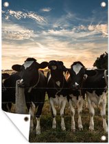 Ben -vous fini avec votre clôture nue ennuyeuse? Illuminez-le avec cette affiche de jardin unique ! En plus d'être une belle décoration de jardin, c'est aussi une affiche de jardin de bonne qualité. Cette toile de jardin contient une image de vaches derrière une clôture avec un coucher de soleil en arrière-plan.