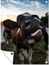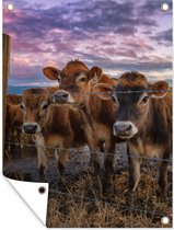 Affiche de jardin - Vache - Animaux - Ciel - Coucher de soleil - Toile jardin - Tableau jardin extérieur - 40x30 cm - Décoration murale - Décoration murale