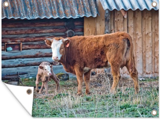 Affiche de jardin vache brune au veau toile en vrac 80x60 cm - Toile de jardin / Toile d'extérieur / Peintures d'extérieur (décoration de jardin)