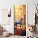 Affiche de porte 85x205 cm - Sticker porte Licorne - Forêt - Coloré - Fleurs - Meiden - Film meuble autocollant - Film porte chambre ado - Film intérieur chambre enfant - Film adhésif porte - Sticker papier peint porte - Décoration chambre ados