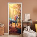 Autocollant de porte - Licorne - Forêt - Coloré - Fleurs - Meiden - Autocollants de porte