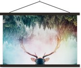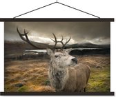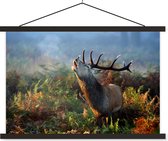 Affiche école Cerf dans la brume lattes plates noir 150x100 cm - Tirage photo sur affiche textielposter (décoration murale salon / chambre)