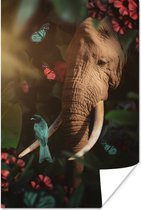 Affiche Éléphant - Fleurs - Jungle - 120x180 cm XXL