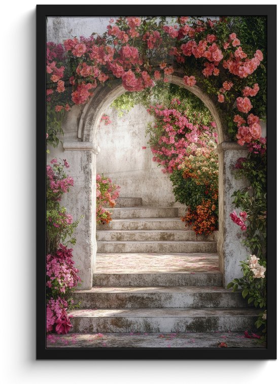 Affiche encadrée - Cadre photo 40x60 cm - Posters - Transparent - Roses - Vintage - Portail - Cadre affiche noir - Décoration - Décoration murale salon - Décoration murale chambre