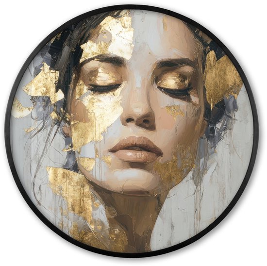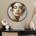 Affiche encadrée Ronde - Cadre photo 60x60 cm - Posters - Gracieuse - Femme - Or - Yeux - Cadre affiche rond noir - Décoration - Décoration murale salon - Décoration murale chambre