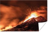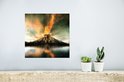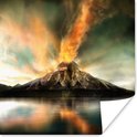 Affiche éruption volcanique active derrière un lac 30x30 cm - Tirage photo sur Poster (décoration murale salon / chambre) / Affiche Catastrophes naturelles