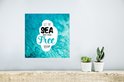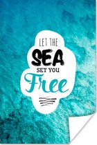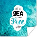 Dire estival "Laissez la mer vous libérer" avec une mer cristalline en arrière-plan.