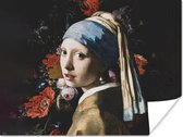 Affiche Fille à la boucle d'oreille en perle - Vermeer - Fleurs - 60x80 cm