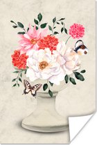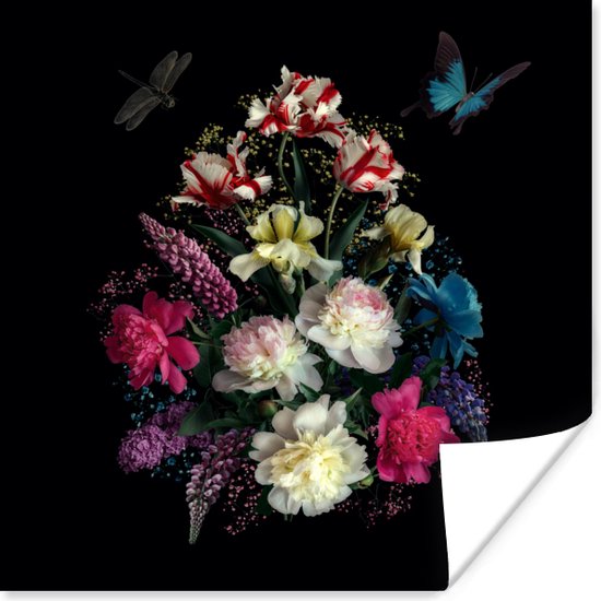 Affiche Fleurs - Papillon - Nature Morte - 50x50 cm
