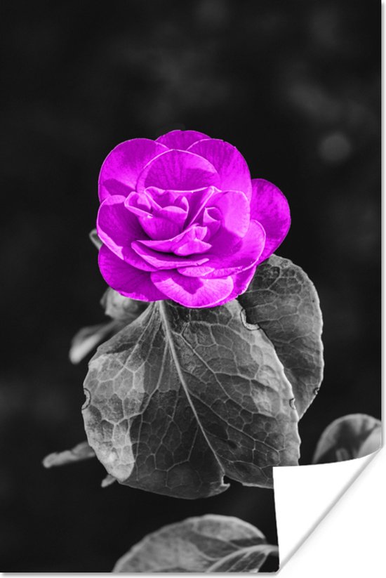 Affiche Fleurs - Rose - Violet - Zwart - Wit - 20x30 cm