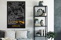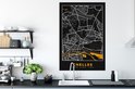 Carte noire de la ville française de Chelles avec des accents dorés.