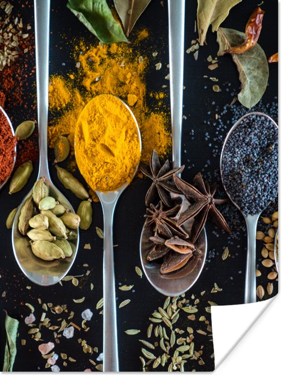 Affiche Herbes - Cuillère - Épices - Zwart - Cuisine - 60x80 cm