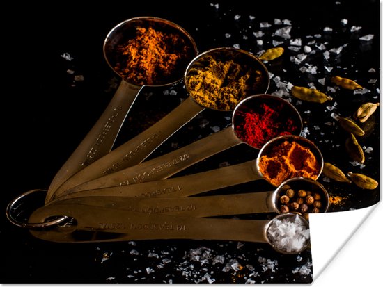 Affiche Herbes - Cuillères - Sel - Épices - Zwart - 80x60 cm