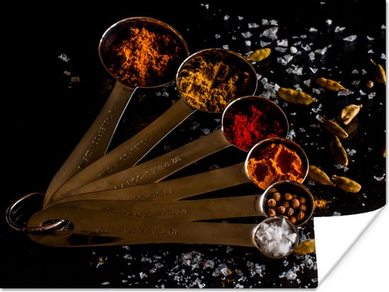 Poster Epices sur cuillères papier 80x60 cm - Tirage photo sur Poster (décoration murale salon / chambre)