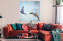 Affiche Hirondelles - Water - Blauw - 100x100 cm XXL