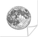 Affiche illustration noir et blanc de la lune 50x50 cm - Tirage photo sur Poster (décoration murale salon / chambre)