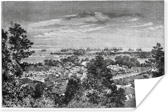 Affiche Illustration Zwart et blanc de Yokohama au Japon 60x40 cm - Tirage photo sur Poster (décoration murale salon / chambre) / Affiche Asie