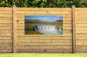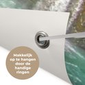 Les Posters de jardin, également appelées toiles de jardin, sont des affiches spécialement conçues pour être accrochées à l'extérieur. Cette nappe de jardin peut donc prendre une raclée. La voile Bisonyl a été utilisée pour cette affiche extérieure. Cette voile est une bâche enduite avec une belle finition. L'affiche de jardin est résistante aux UV, elle ne se décolore donc pas au soleil. Plusieurs anneaux ont été placés dans la toile pour que vous puissiez facilement l'accrocher! Jusqu'à une taille de 120x80 cm, les anneaux sont dans les coins, avec des tailles plus grandes, les anneaux viennent tous les 60 cm. Le tissu résiste aux différentes influences climatiques et est garanti 3 ans.