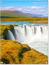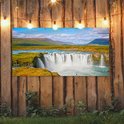 Décorez votre jardin avec ce poster de jardin ! Cette affiche de jardin présente une impression unique d'une cascade avec des montagnes en arrière-plan. Outre que le tissu de jardin a l'air bien, il est également de bonne qualité.